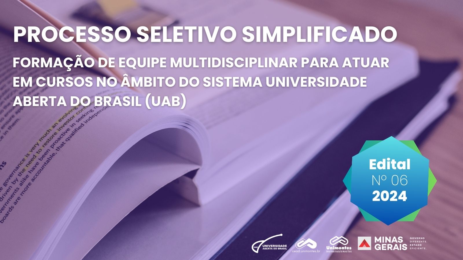 NoticiasProcesso Seletivo Simplificado para Formação de Equipe Multidisciplinar para Atuar em Cursos no Âmbito do Sistema Universidade Aberta do Brasil (UAB) – Edital 06/2024 Noticias / Jeferson / 27 de junho de 2024