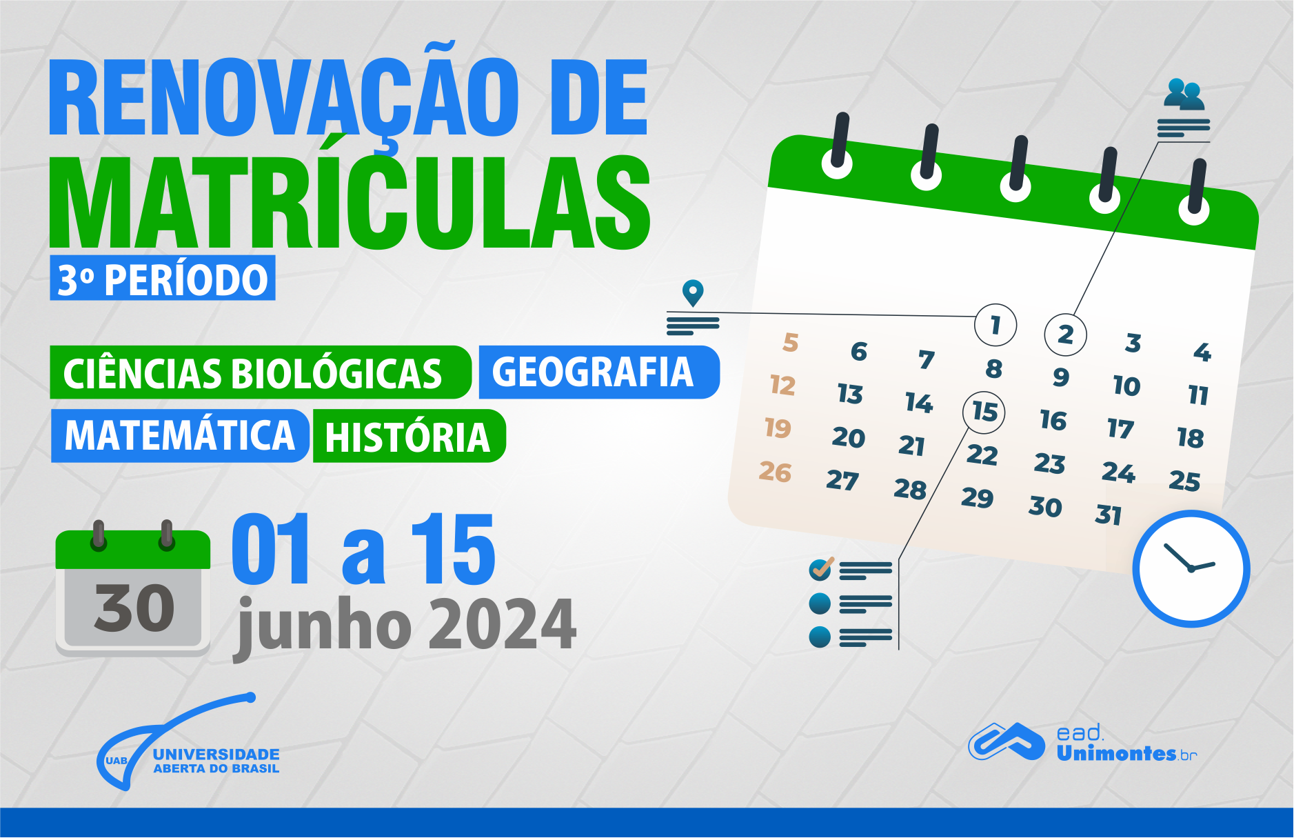 NoticiasRenovação da Matrícula – Cursos de Licenciatura e Especialização UAB/UNIMONTES Noticias / Jeferson / 29 de maio de 2024