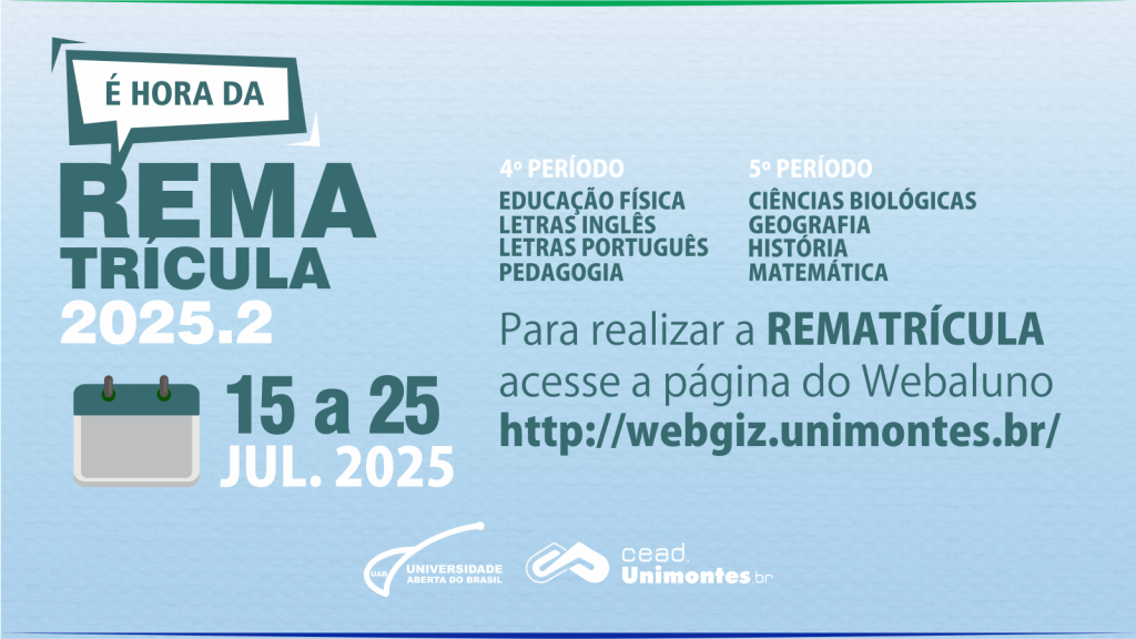 Noticias, PrincipalRenovação da matrícula para o 4º e 5º períodos dos Cursos de Licenciatura da UAB/Unimontes Noticias, Principal / Tátylla Pimenta / 4 de julho de 2025