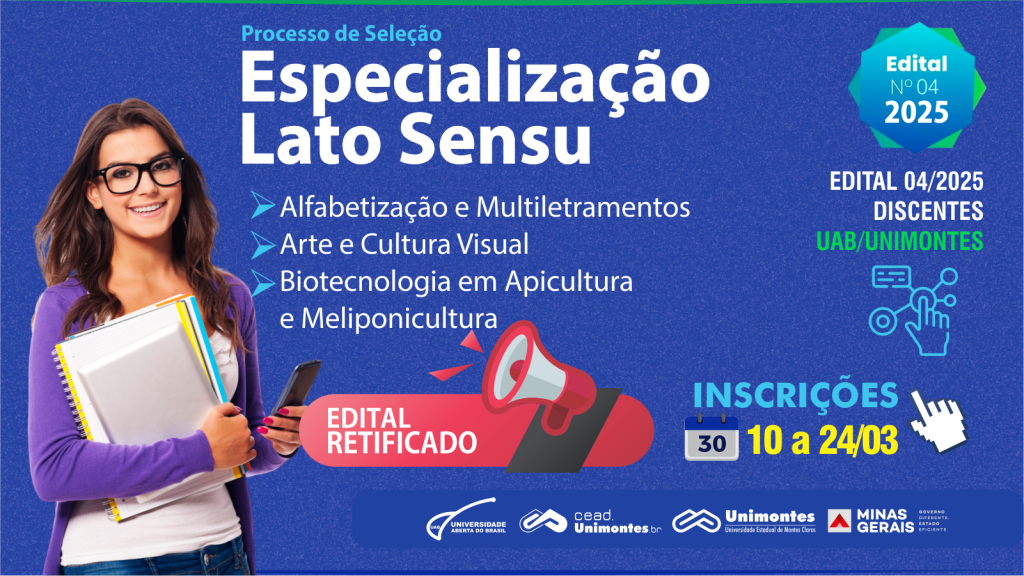 Noticias, PrincipalUAB/Unimontes abre inscrições para novos cursos de Especializações – Inscrições Prorrogadas! Noticias, Principal / Tátylla Pimenta / 10 de março de 2025