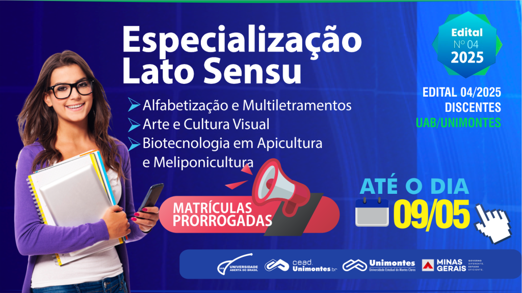 Noticias, PrincipalO prazo para a Matrícula dos Cursos de Especialização da UAB/Unimontes vai até o dia 09 de Maio de 2025 Noticias, Principal / Tátylla Pimenta / 30 de abril de 2025