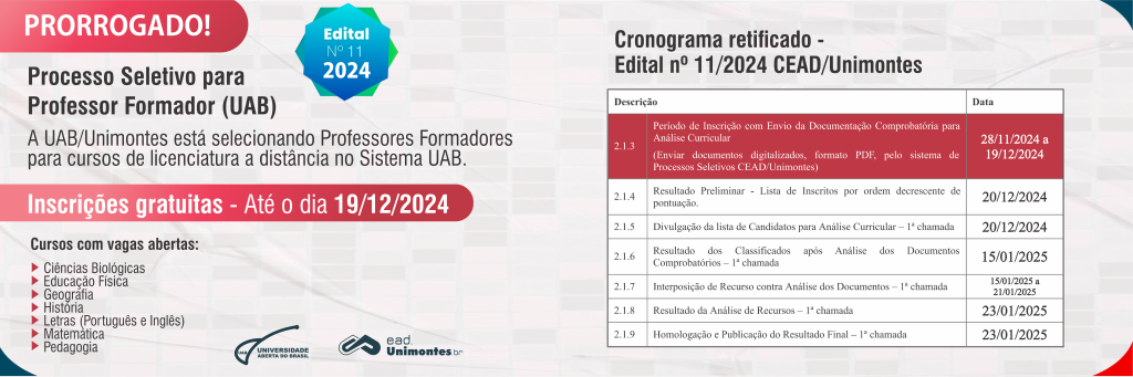 UAB/Unimontes divulga edital para seleção de Professores Formadores – Edital 11/2024 PRORROGADO!