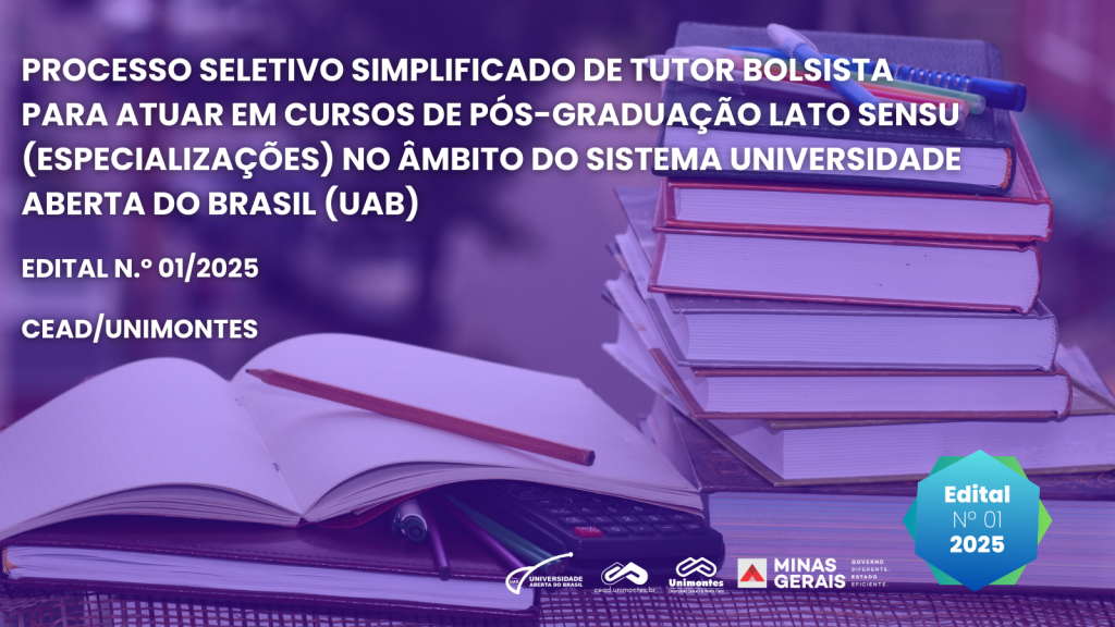 destaque, EditaisProcesso Simplificado de Tutor Bolsista para Atuar em Cursos de Pós-graduação Lato Sensu (Especializações) no Âmbito do Sistema Universidade Aberta do Brasil (UAB) – Edital N.° 01/2025 – CEAD/UNIMONTES – Vagas Remanescentes destaque, Editais
