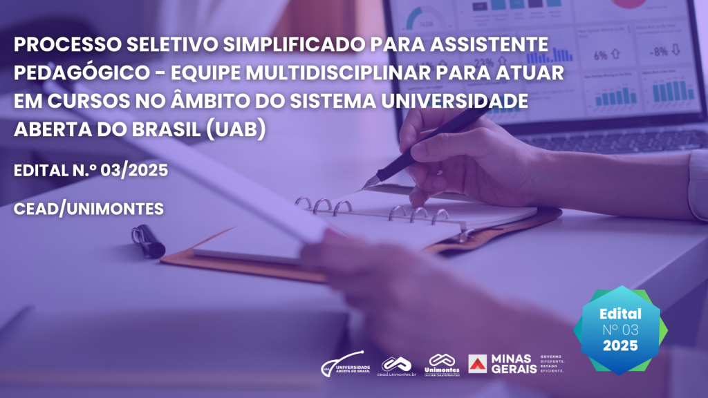 destaque, EditaisProcesso Seletivo Simplificado para Assistente Pedagógico – Equipe Multidisciplinar para Atuar em Cursos no Âmbito do Sistema Universidade Aberta do Brasil (UAB) – VAGAS REMANESCENTES – Edital N.º 03/2025 – CEAD/UNIMONTES destaque, Editais