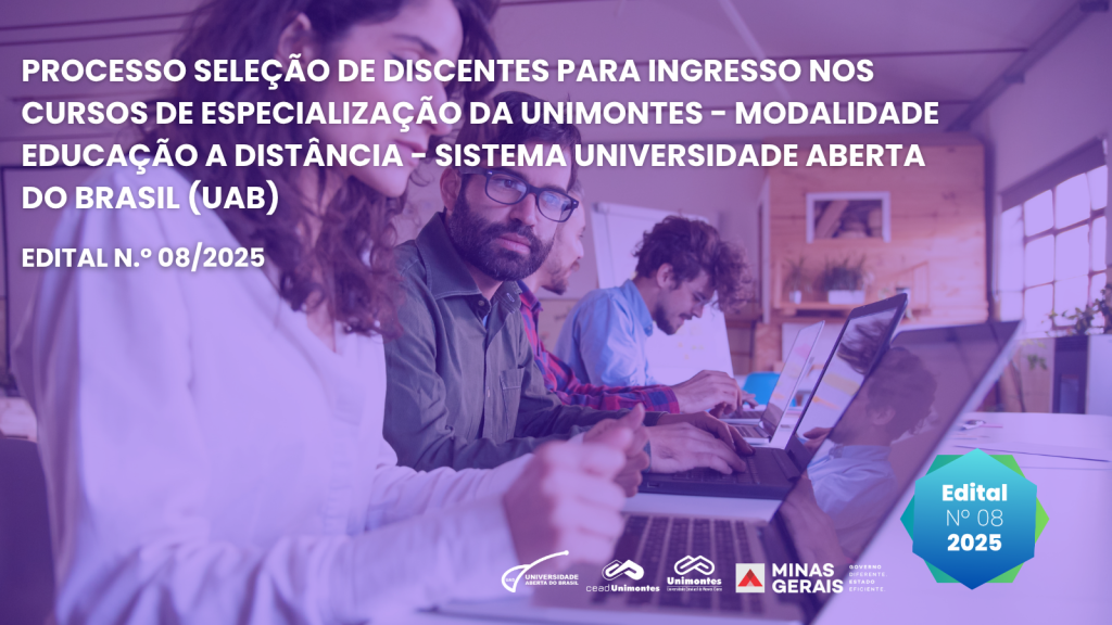destaque, EditaisProcesso de Seleção de Discentes para os Cursos de Especialização da Unimontes – Modalidade Educação a Distância – Sistema Universidade Aberta do Brasil (UAB) – Edital Nº 08/2025 destaque, Editais