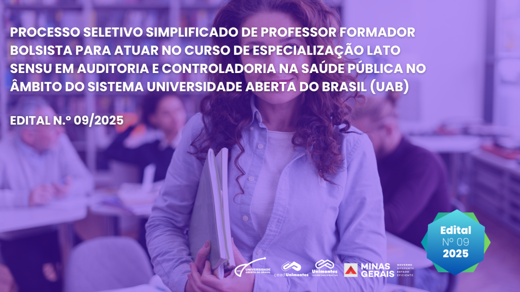 destaque, EditaisProcesso Seletivo Simplificado de Professor Formador Bolsista para Atuar no Curso de Especialização Lato Sensu em Auditoria e Controladoria na Saúde Pública no Âmbito do Sistema Universidade Aberta do Brasil (UAB) – Edital Nº 09/2025 – CEAD/UNIMONTES destaque, Editais