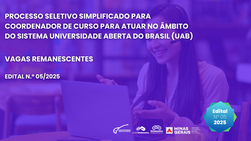 EditaisProcesso Seletivo Simplificado para Coordenador de Curso de Curso para Atuar no Âmbito do Sistema Universidade Aberta do Brasil (UAB) – Edital Nº 05/2025 – CEAD/UNIMONTES – VAGAS REMANESCENTE Editais