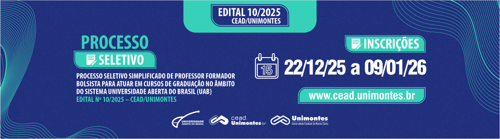 A Universidade Estadual de Montes Claros (Unimontes), por meio do Centro de Educação a Distância (CEAD), publicou o Edital nº 10/2025, que abre processo seletivo simplificado para professores formadores bolsistas em cursos de Licenciatura na modalidade a distância do Sistema Universidade Aberta do Brasil (UAB). cead.unimontes.br